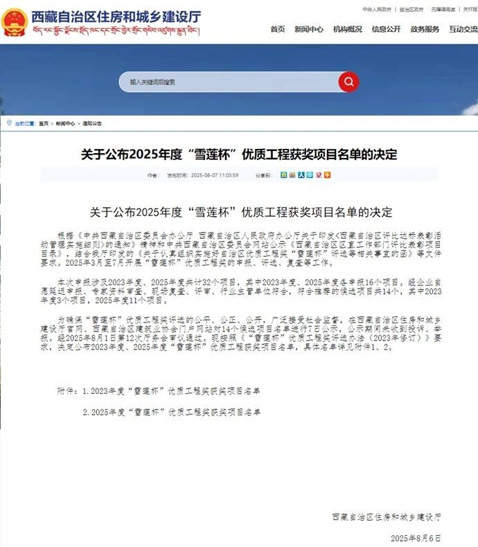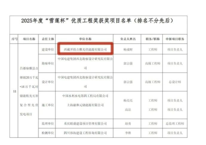 8月7日,西藏自治区住房和城乡建设厅公布2025年度“雪莲杯”优质工程获奖项目名单,由新利官方(中国)总部吉雅光伏公司投资建设的昌都察雅县吉塘镇20万千瓦+16万千瓦时储能牧光互补复合型光伏发电项目荣获该奖项。
