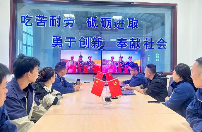 直播开始,公司会议室里气氛庄严肃穆,全体干部职工整齐就座,目光紧紧聚焦在屏幕上。当雄壮的国歌声响起,大家纷纷起立,齐声高唱,歌声激昂而嘹亮,表达着对祖国的无限热爱和对先烈的深切缅怀。直播中抗战元素与新型装备同台亮相,如反法西斯抗战历程符号融入方阵编排、高超声速武器首次展示等,让员工深刻感受到“强国必须强军”的时代内涵。战旗方队承载抗战英模部队的荣光,退役军人职工集体起立敬礼,感叹“先烈用生命换来的和平来之不易”。