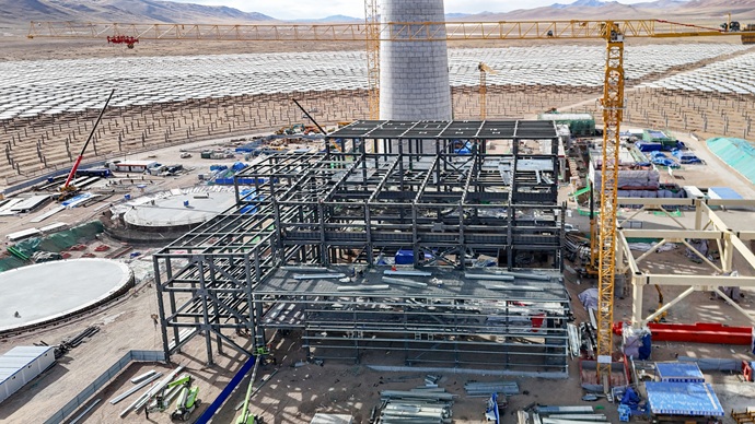 安多土硕光热项目发电厂房建设现场。
