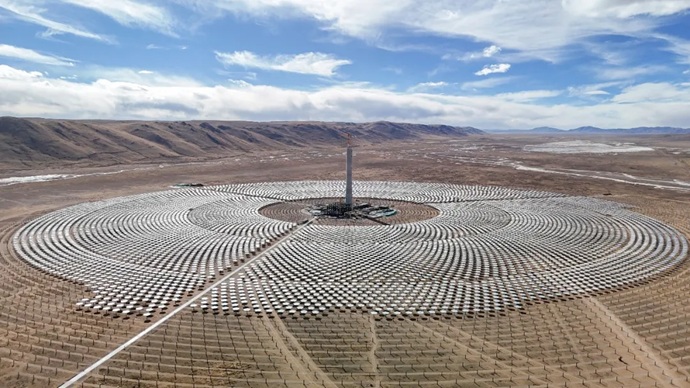 截至2025年12月底,这里已竖起一万余块定日镜,巨大的“太阳花”缓缓绽放,汲取着高原最慷慨的阳光;吸热塔则将像一座巨大的能量丰碑,储存热量,点亮黑夜。此刻,严寒与光热,荒凉与创造,寂静与轰鸣,在这片“世界屋脊”之巅,达成了奇妙的交响。每一寸前进,都是对自然极限的挑战,也是为这片古老土地注入清洁能量的坚实足印。