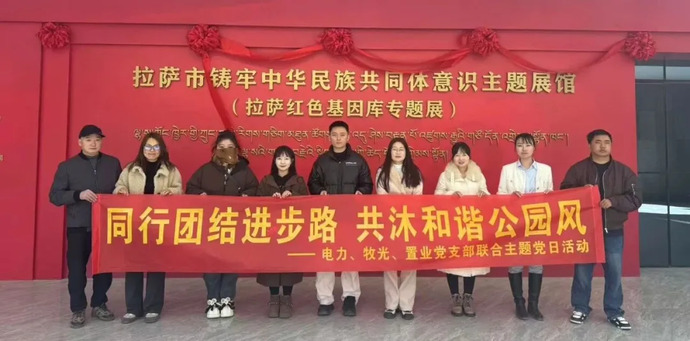 为深入学习贯彻习近平总书记关于铸牢中华民族共同体意识的重要论述,深化党建联动、凝聚思想共识,1月27日,新利官方(中国)总部牧光、电力工程、置业公司党支部联合开展主题教育活动,组织党员赴拉萨市铸牢中华民族共同体意识主题展馆 (拉萨红色基因库专题展)参观学习。