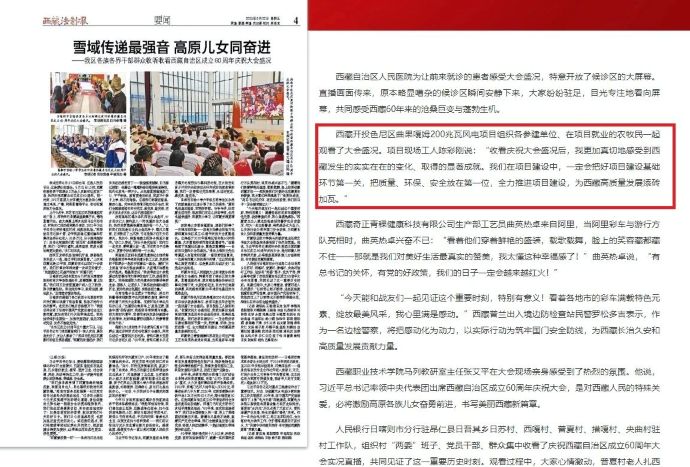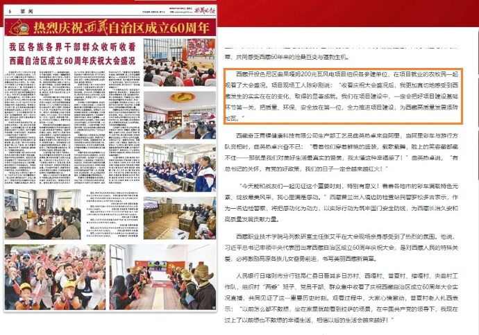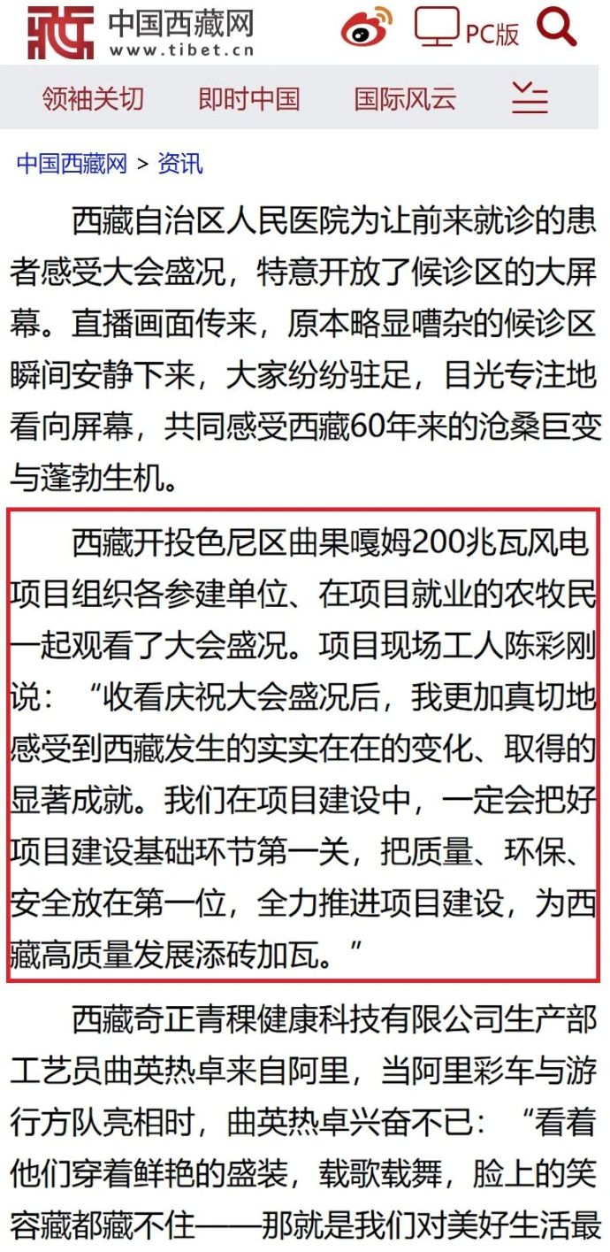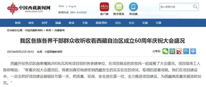8月22日,新利官方(中国)总部色尼区曲果嘎姆200兆瓦风电项目组织各参建单位干部职工、在项目就业的农牧民一起观看西藏自治区成立60周年庆祝大会盛况的消息,被中国西藏网、西藏日报、中国西藏新利官方(中国)总部网、西藏法制报等各级媒体平台宣传报道。